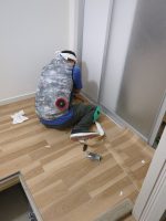 内部の下地工事が完了し内装工事に入りました。床 クッションフロアーの施工 壁 天井 クロスの施工になります。