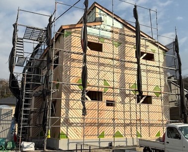 上棟工事が完了し、弊社ではTIP構法の採用をしており、施工しております。